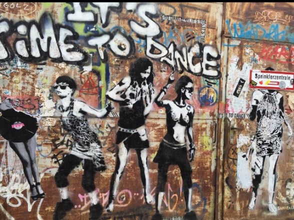 Berlins night, neons bright glow and flash.